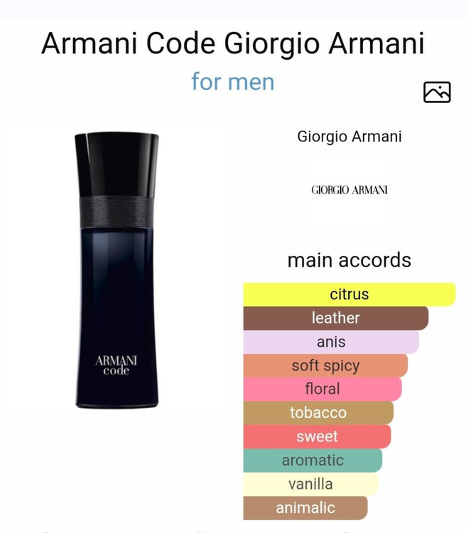 یک عطر پرطرفدار که برنده جایزه لوکسترین عطر از FIFI در سال 2006، آرمانی کد مردانه در سال 2004 توسط عطرسازان بنام آنتوان لی و آنتوان میزندی طراحی و به بازار خوش عطر و ادکلن عرضه شد. این عطر مردانه با غلظت ادو تویلت و گروه بویایی شرقی ادویهای و نتهای چرمی معروفیت و محبوبیت چشمگیری داشته است.